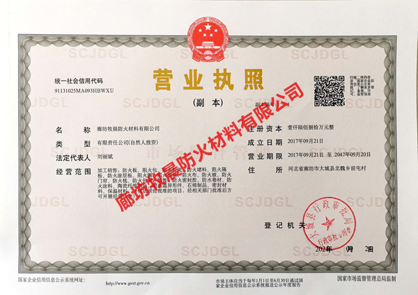 廊坊牧晨防火材料有限公司,是防火材料企業。本公司主要銷售防火布系列、防火封堵材料系列、防火涂料系列、三大系列產品。